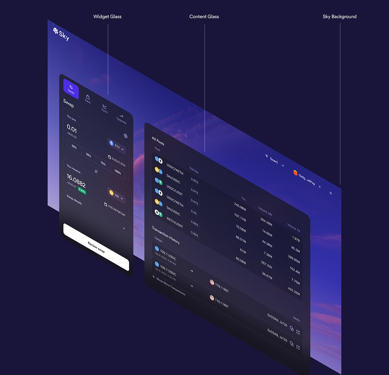 The Sky.money App Design is the very first UI presented by Sky (formerly MakerDAO), one of the top DeFi Protocols.