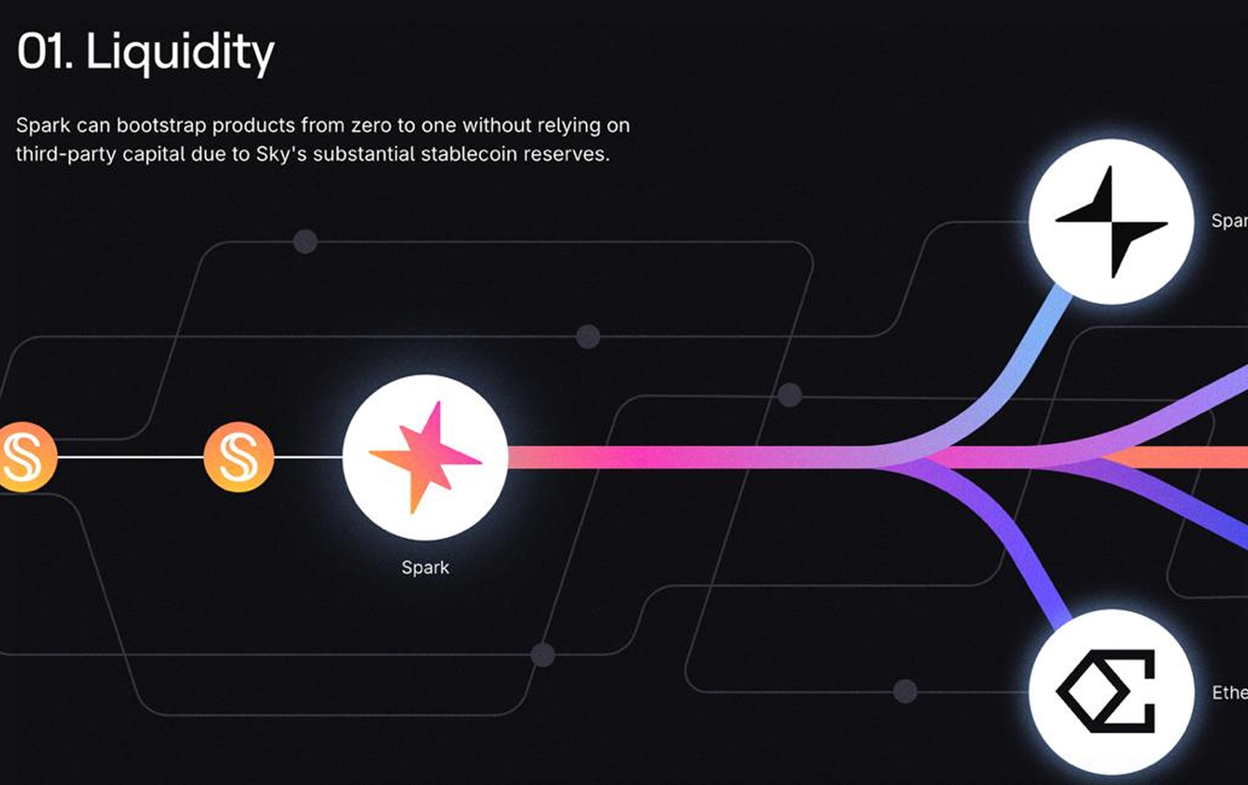 The launch introduced a new logo, a fully redesigned website and app, and the deployment of the Spark Liquidity Layer. The reveal was supported by a brand presentation video, where the original Spark identity transformed into its new form, symbolizing progress and alignment with Sky’s broader vision.